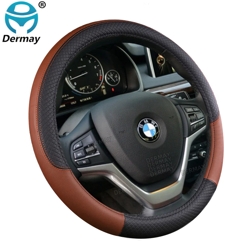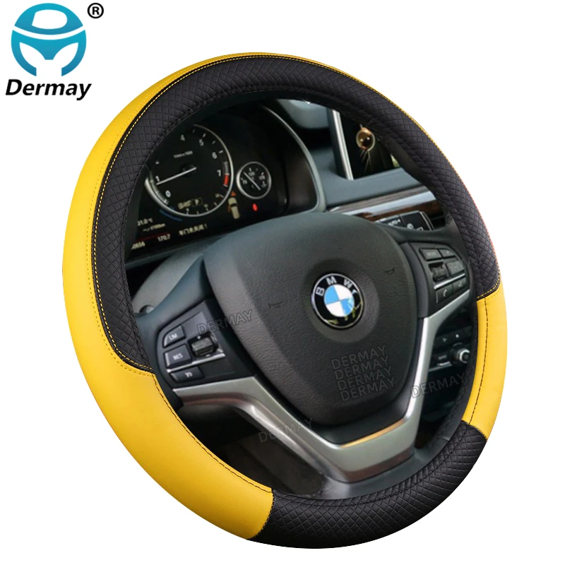 Color Name: PURPLE - 9 Color Sport Auto Steering Wheel Covers Anti-Slip Leather Car Steering-wheel Cover Car-styling Anti-catch Holder Protor
