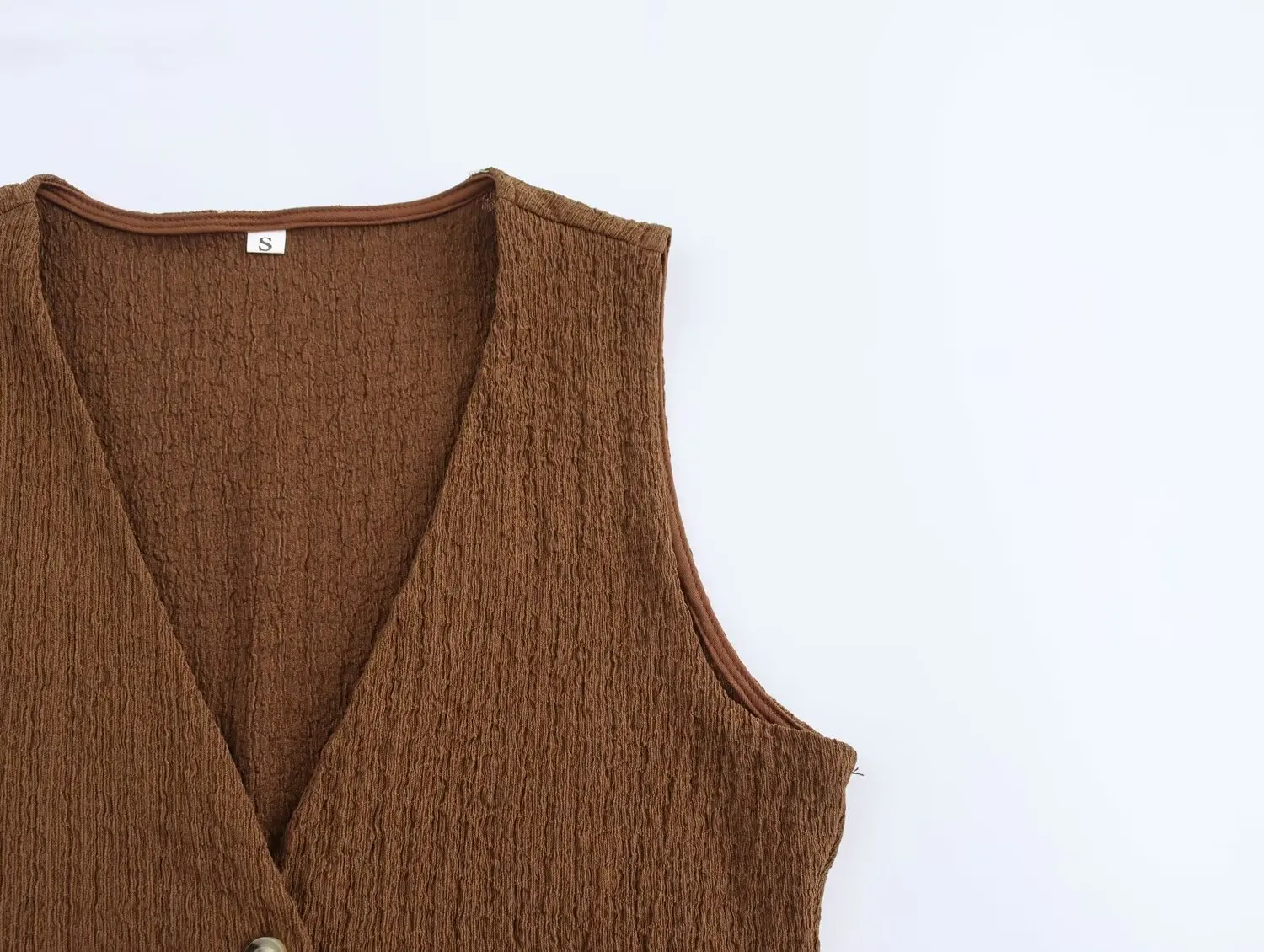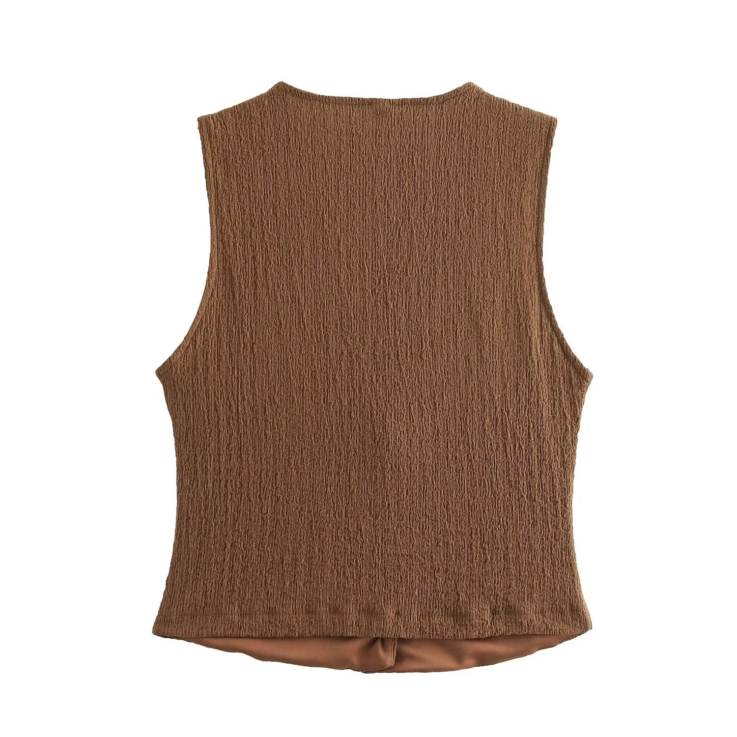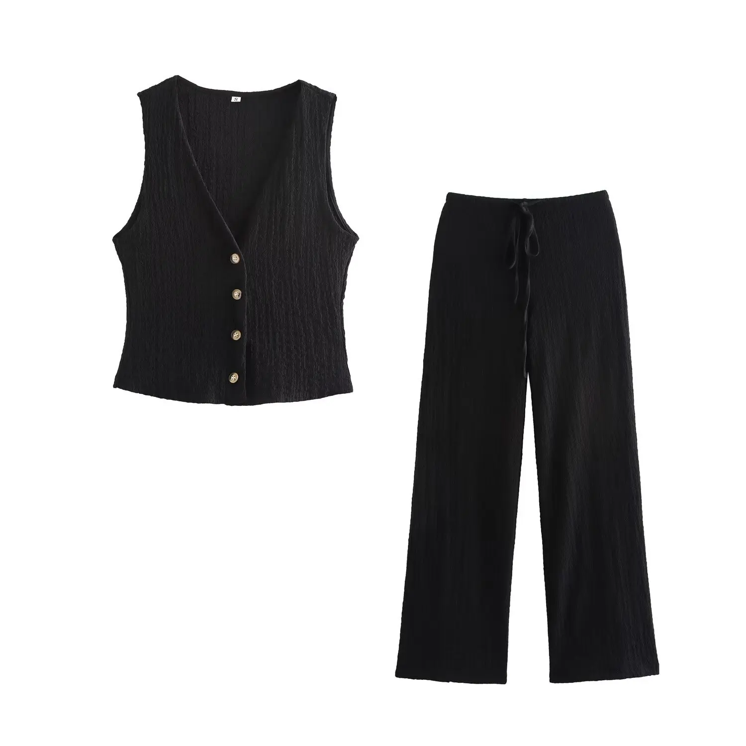 European American Women'S High-Waisted Straight Trousers Casual Summer Suit Long Textured Single-Breasted Vest Coat Wholesale