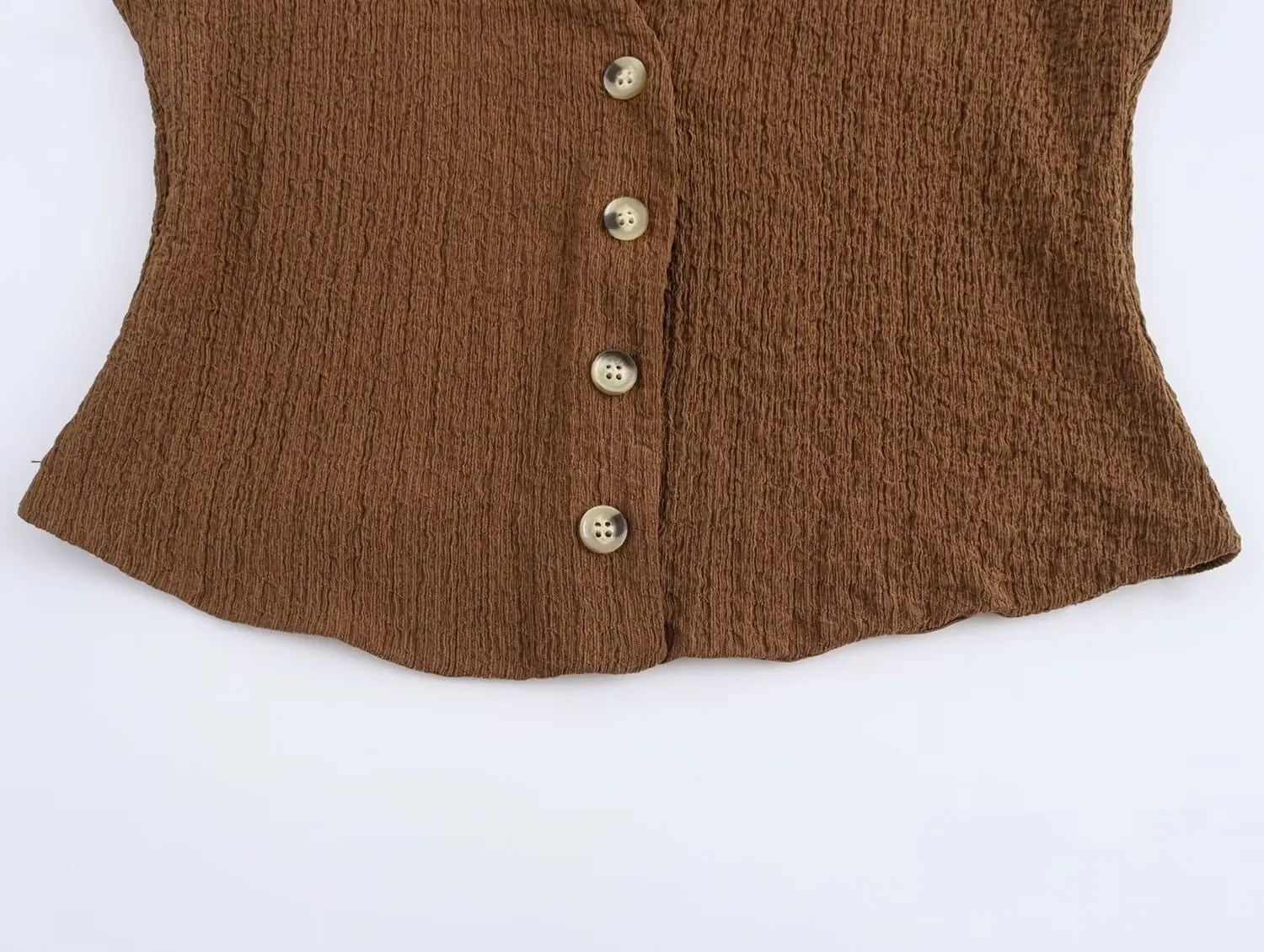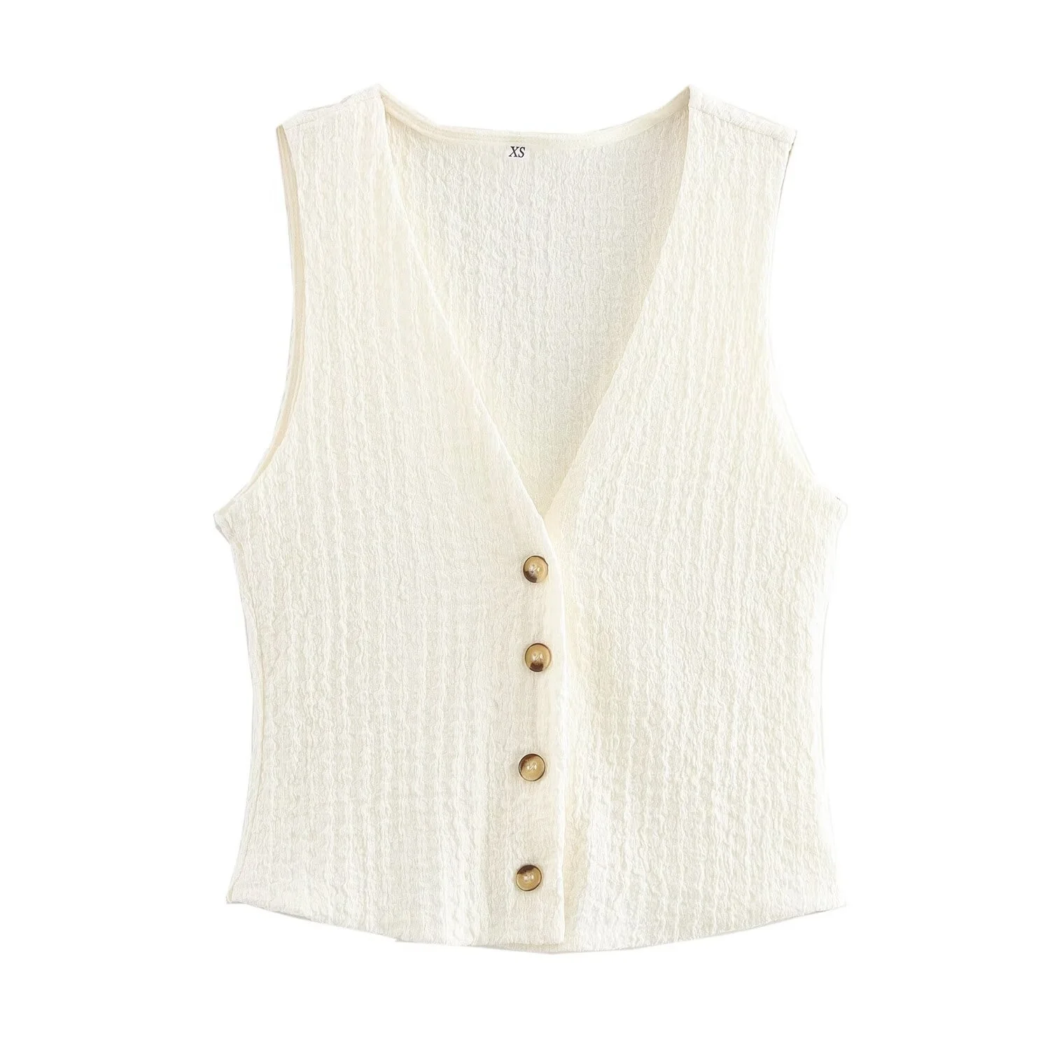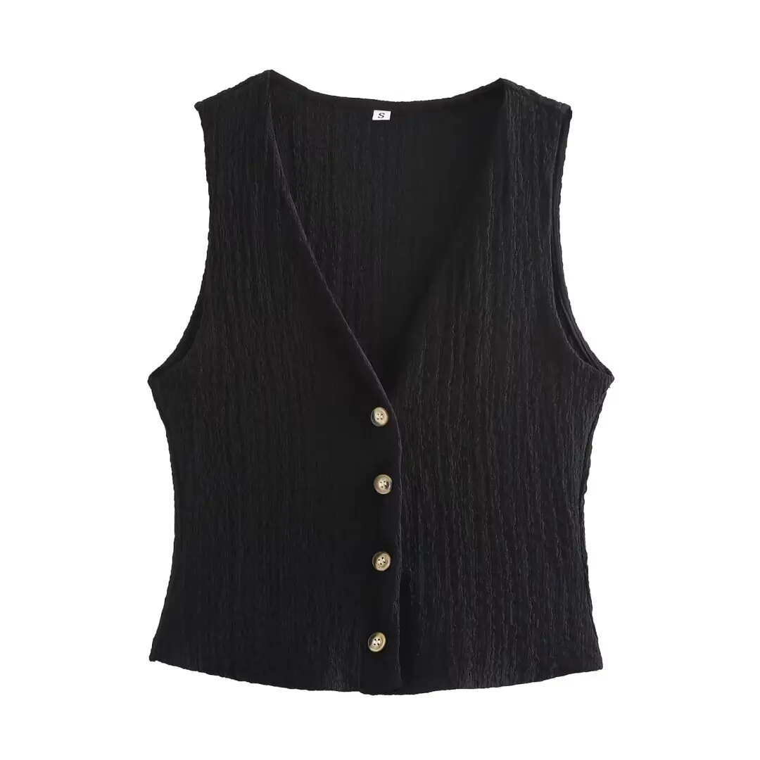European American Women'S High-Waisted Straight Trousers Casual Summer Suit Long Textured Single-Breasted Vest Coat Wholesale
