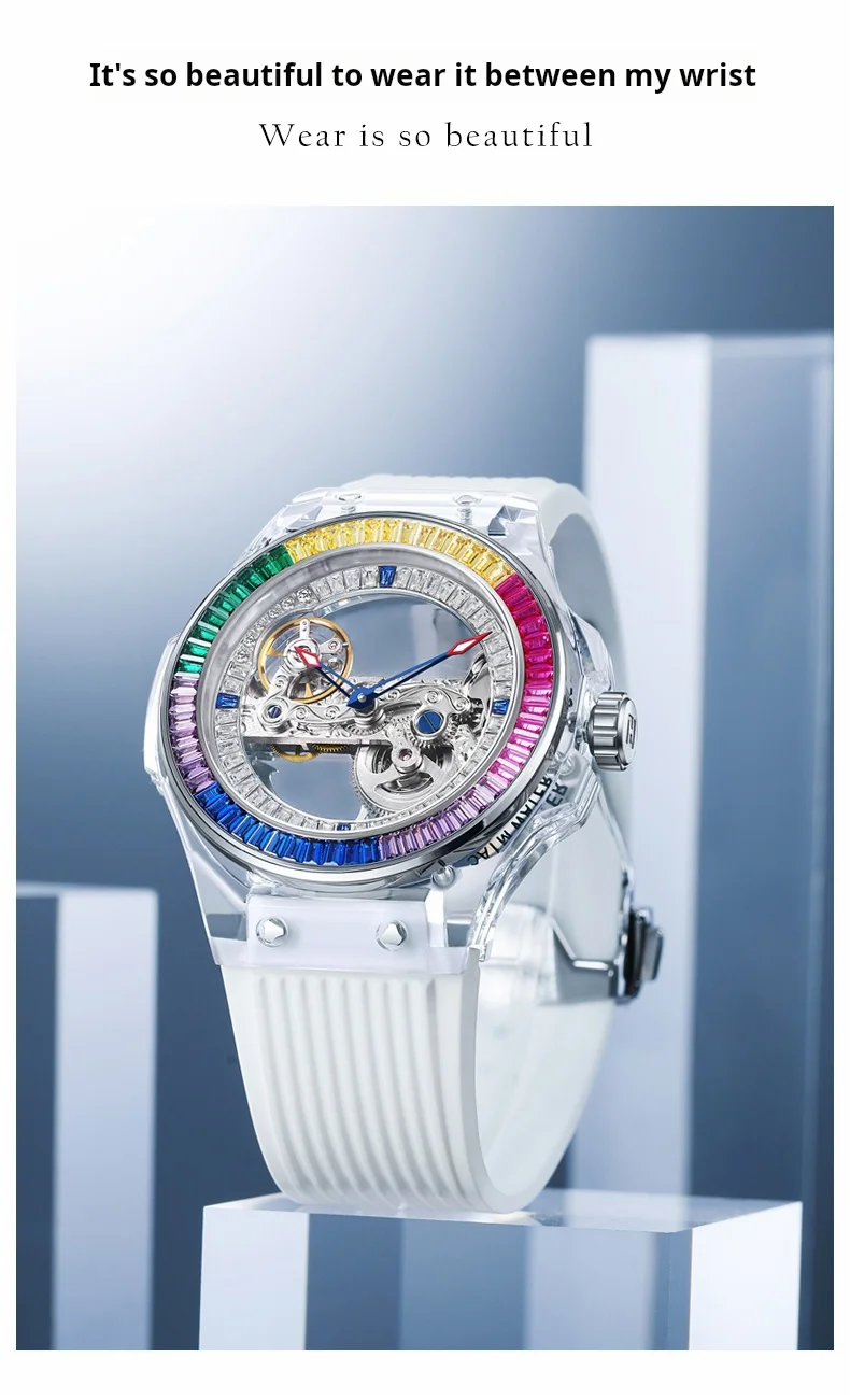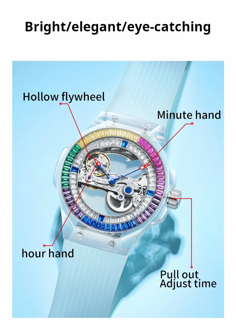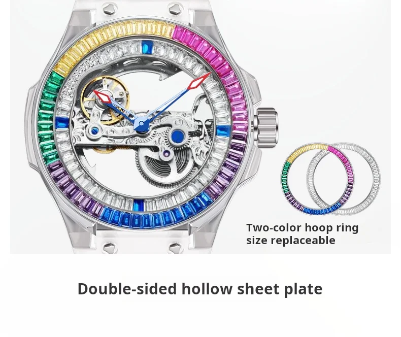 Men'S Luxury Stainless Steel Watch Luminous Hollow Design Celestial Series for Leisure Business Waterproof Pointer Silicone Band